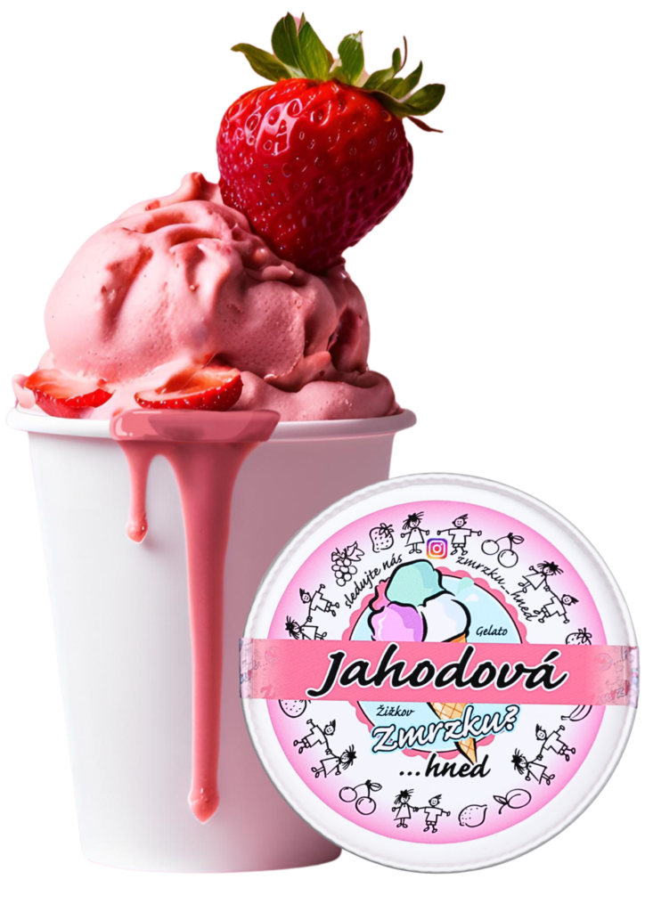 Složení: Mléko, smetana (18 %), cukr, jahody (17 %), sušené mléko odtučněné, stabilizátory: guma guar, guma tara. Skladujte při teplotě -18 °C nebo nižší. Po rozmrazení znovu nezmrazujte. Při -18 °C minimální trvanlivost do: viz datum na spodní části obalu. Výrobce: ZMRZKU HNED s.r.o., Mariánohorská 48/7 Praha 4.