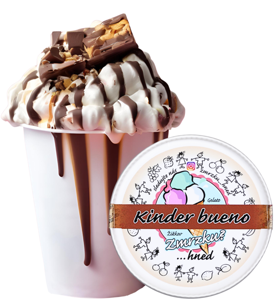 Složení: Mléko, smetana (18 %), cukr, mléčná čokoláda (10 %), lískový oříšek (6 %), sušené mléko odtučněné, stabilizátory: guma guar, guma karubin. Skladujte při teplotě -18 °C nebo nižší. Po rozmrazení znovu nezmrazujte. Při -18 °C minimální trvanlivost do: viz datum na spodní části obalu. Výrobce: ZMRZKU HNED s.r.o., Mariánohorská 48/7 Praha 4.