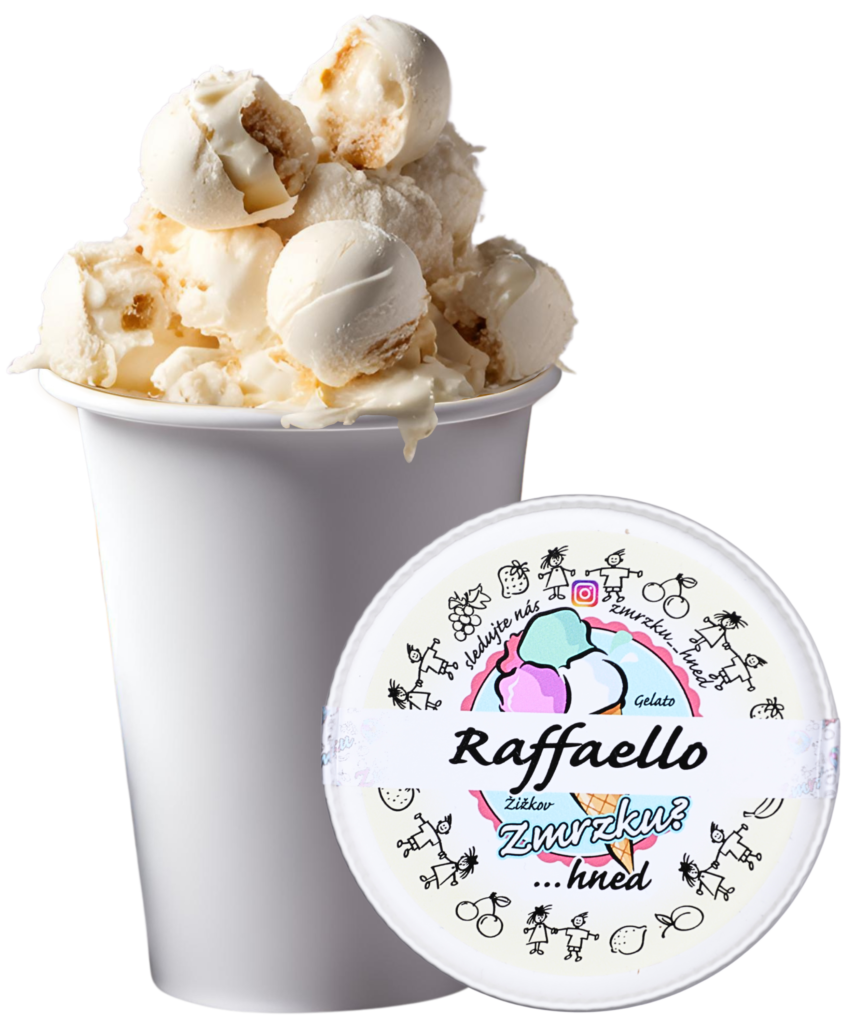 Složení: Mléko, smetana (18 %), cukr, kokos (12 %), bílá čokoláda (8 %) – (cukr, kakaové máslo, sušené mléko), mandle (5 %), sušené mléko odtučněné, stabilizátory: guma guar, guma tara. Skladujte při teplotě -18 °C nebo nižší. Po rozmrazení znovu nezmrazujte. Při -18 °C minimální trvanlivost do: viz datum na spodní části obalu. Výrobce: ZMRZKU HNED s.r.o., Mariánohorská 48/7 Praha 4.
